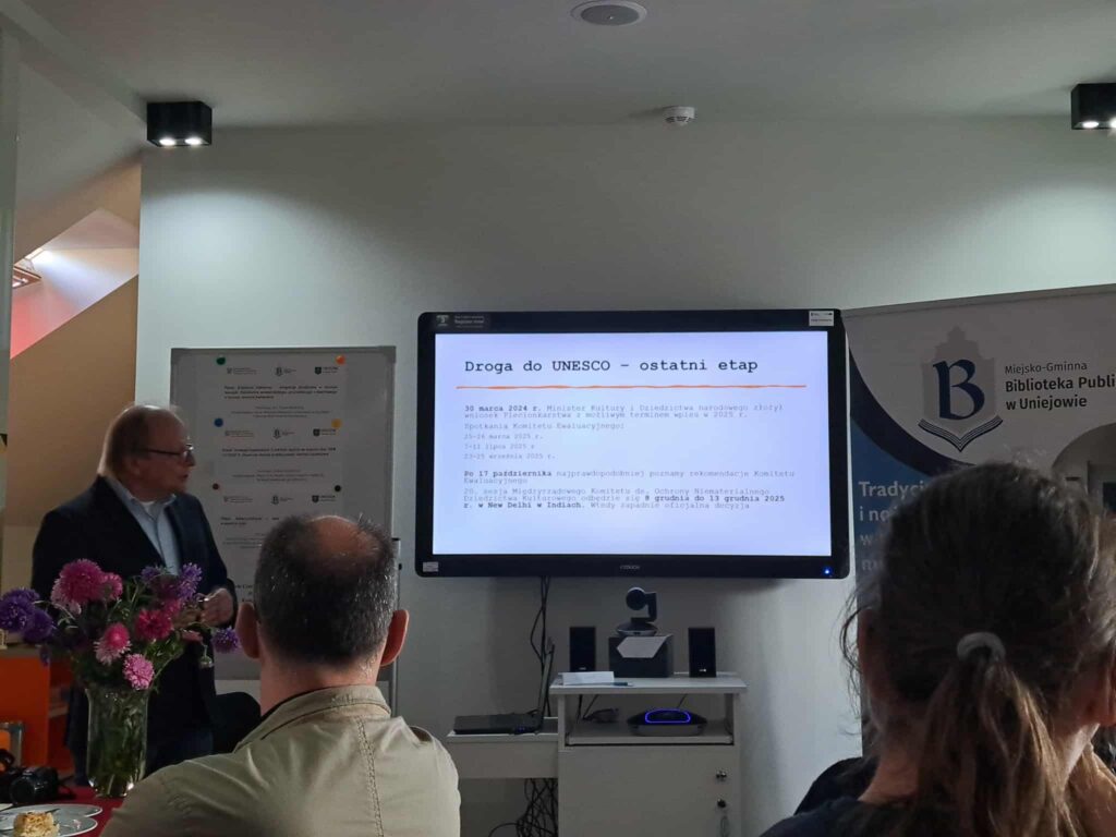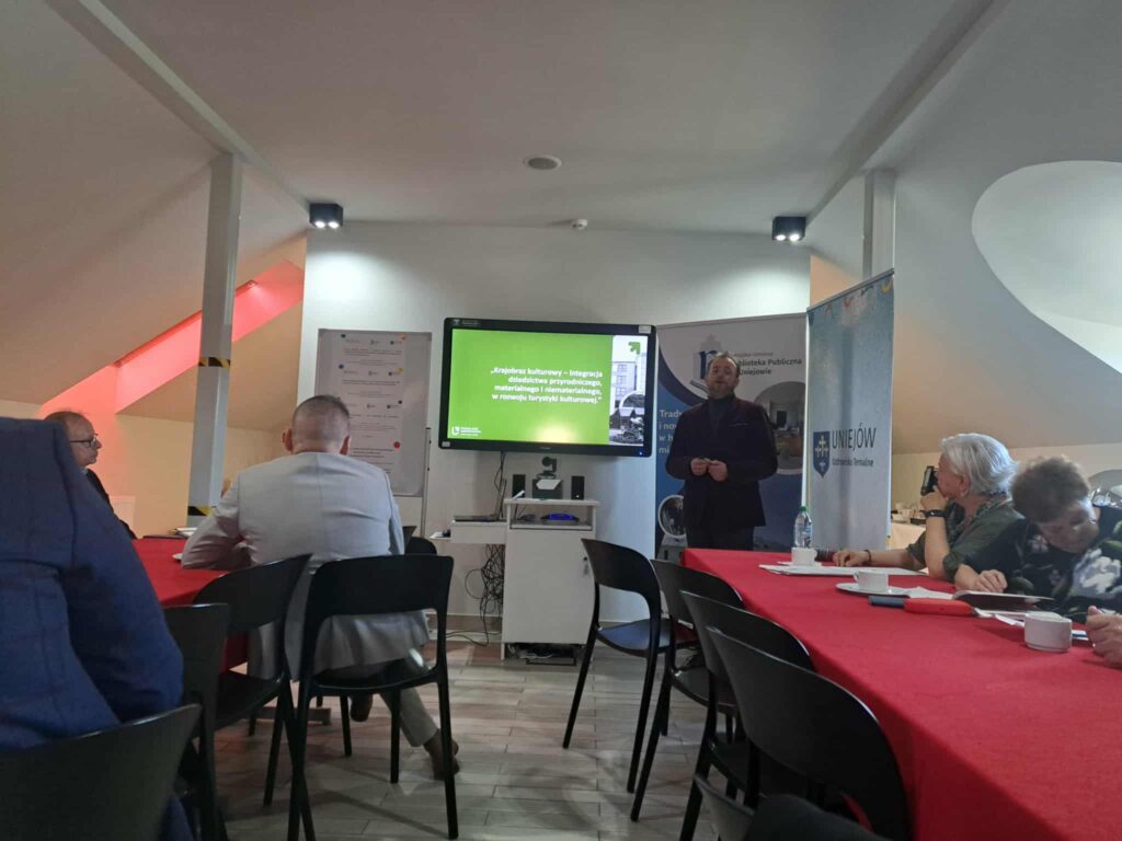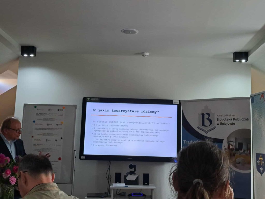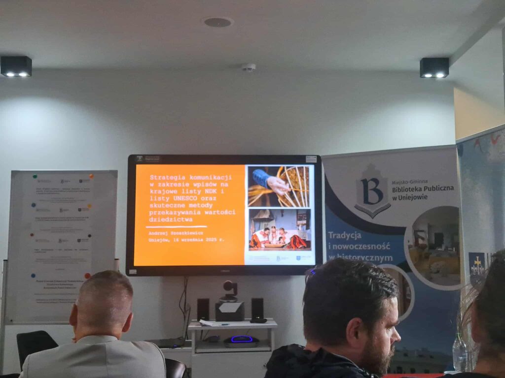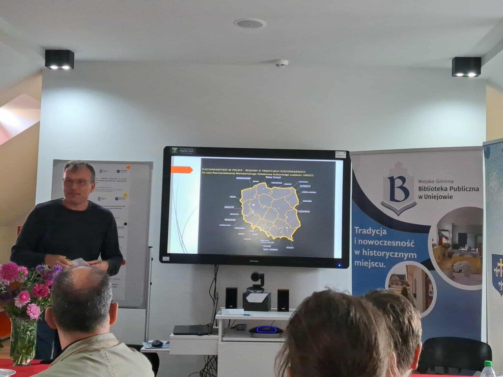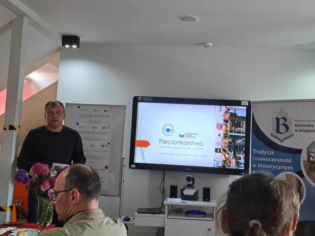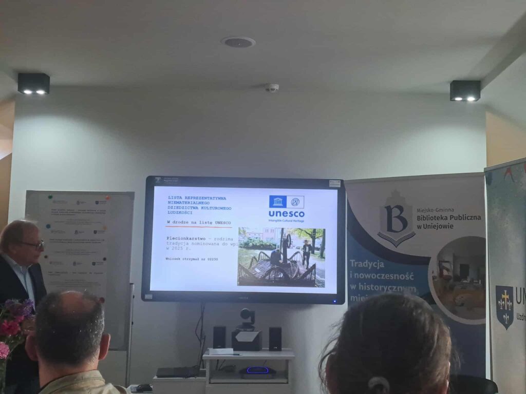 W dniu 16 września br. przedstawiciele Zespołu Szkół i Placówek Oświatowych Województwa Łódzkiego w Łowiczu oraz Stowarzyszenia Polskich Plecionkarzy mieli przyjemność uczestniczyć w spotkaniu w ramach Centrum Kompetencji Niematerialnego Dziedzictwa Kulturowego w Miejsko-Gminnej Bibliotece w Uniejowie. Podczas wydarzenia podjęto m.in. tematykę roli dziedzictwa niematerialnego w rozwoju turystyki kulturowej, zagrożeń związanych z jego komercjalizacją, a także komunikacji w kontekście wpisów na krajowe listy Narodowego Dziedzictwa Kulturowego i listy UNESCO. Wśród prelegentów znaleźli się m.in.: prof. Bogdan Włodarczyk i prof. Katarzyna Smyk. Panowie Wojciech Świątkowski i Andrzej Szoszkiewicz omówili działania związane z komunikacją dotyczącą drogi plecionkarzy na Listę Reprezentatywną Niematerialnego Dziedzictwa Kulturowego Ludzkości. W którym miejscu są dziś polscy plecionkarze w drodze na listę światową? To ostatnia prosta. Odliczamy czas do grudnia 2025. To wtedy Międzynarodowy Komitet do Spraw Niematerialnego Dziedzictwa Kulturowego w New Delhi w Indiach ogłosi wpisy na światową listę. Mamy nadzieję, że znajdą się na niej „Tradycje plecionkarskie w Polsce”. ZSiPOWŁ reprezentowali p. Agnieszka Pawłowska-Kalinowska i p. Tadeusz Żaczek. Wśród gości znalazła się również Sekretarz Miasta Łowicza p. Katarzyna Skierska-Pięta. Miasto Łowicz podjęło również intensywne działania w celu wpisania na Listę UNESCO tradycji Bożego Ciała w Polsce.