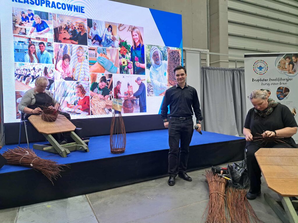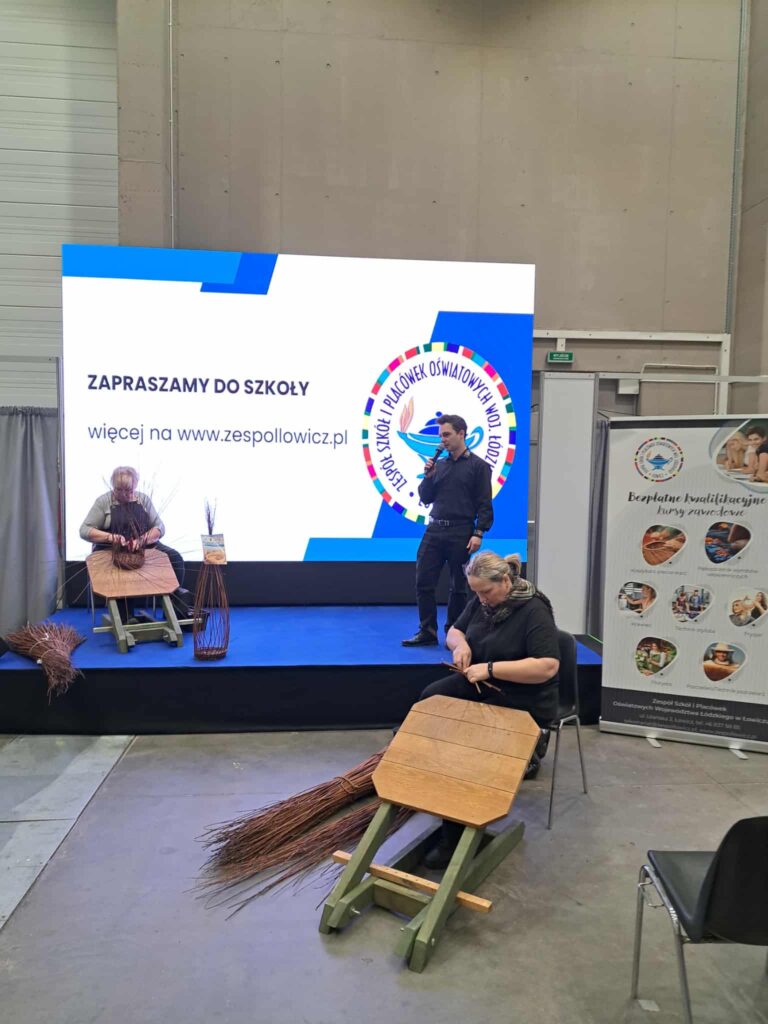 Podczas drugiego dnia festiwalu naszą szkołę reprezentowali p. Agnieszka Pawłowska-Kalinowska, p. Halina Szymborska, p. Katarzyna Frydrych oraz p. Krzysztof Zwoliński. Trójka z nich wzięła udział w pokazie i warsztatach wyplatania z wikliny, promując tradycyjne rzemiosło i rozwijając swoje umiejętności artystyczne.