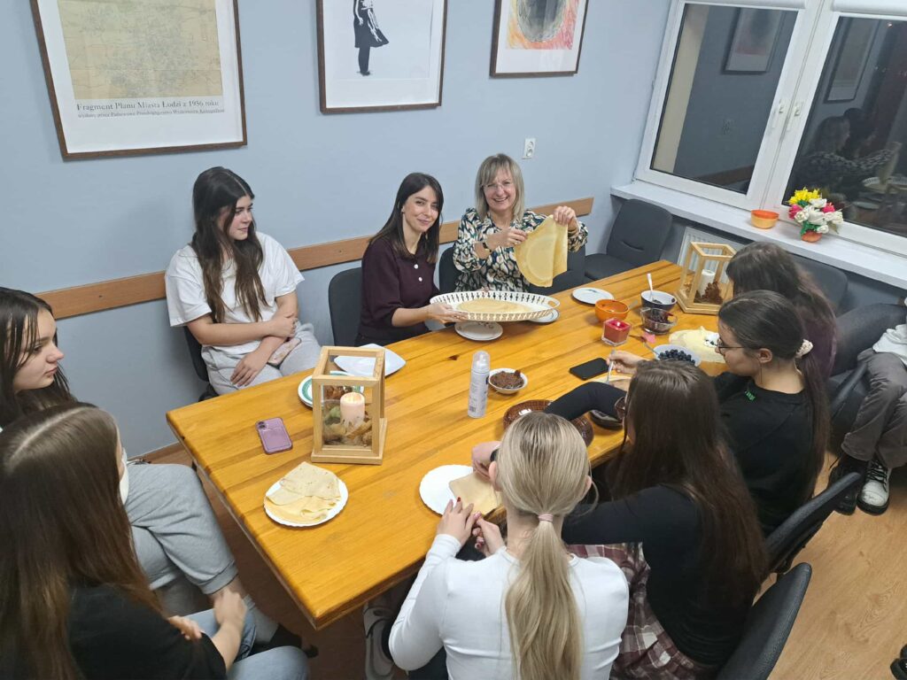 Naleśniki w pełnej krasie, z serem, dżemem, marmoladą, ze śmietaną, z owocami, z cukrem, bez cukru. Wyjątkowo słodki dzień listopadowy za nami. Smaki naleśników miały znaczenie, lecz jeszcze większe miało towarzystwo wychowanków i wychowawców Bursy Samorządu Województwa Łódzkiego w Łowiczu, którzy najpierw wspólnie przygotowywali naleśniki o najróżniejszych kształtach, a następnie delektowali się smakami dobierając ulubione dodatki. 20 listopada mieszkańcy Bursy spędzili fantastyczny wspólny wieczór. Rozmawiano na temat sukcesów odniesionych w ostatnim czasie przez każdą z obecnych na spotkaniu osób.