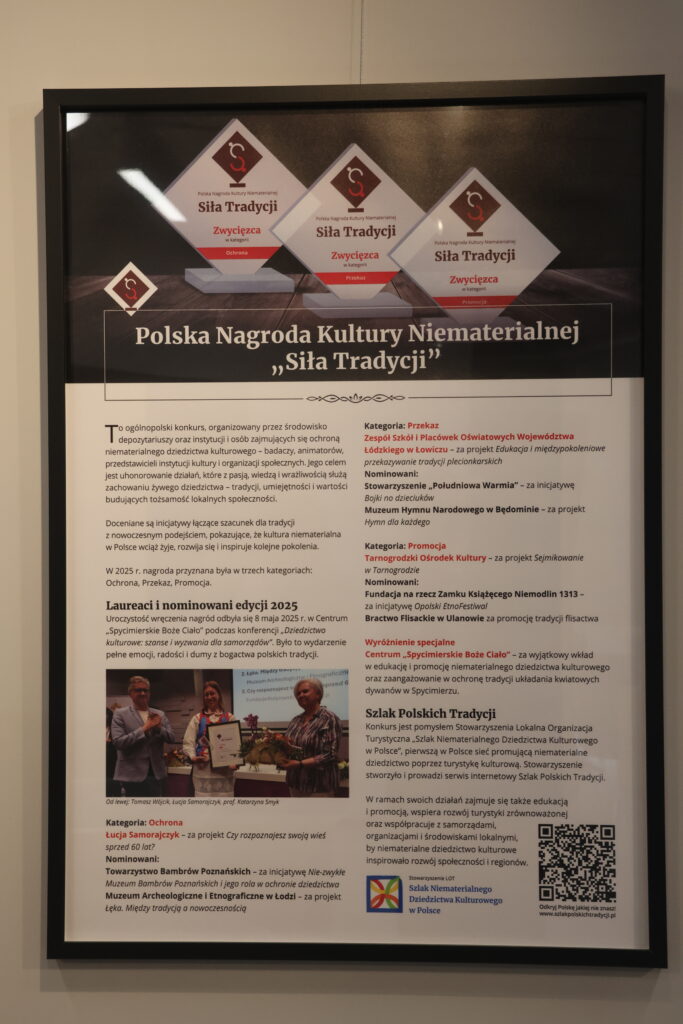 W dniu 21 listopada 2025 r. przedstawiciele ZSiPOWŁ w Łowiczu wzięli udział w drugim dniu IX Seminarium Spycimierskim. W Centrum Spycimierskiego Bożego Ciała otwarto wystawę pokonkursową, w której Zespół Szkół i Placówek Oświatowych Województwa Łódzkiego w Łowiczu zdobył I miejsce w kategorii ,,Przekaz”. Szkoła zaprezentowała historię nauczania plecionkarstwa, które trwa od 2014 roku. Przygotowano warsztaty do wyplatania, gotowe wyroby, rodzaje wikliny. Jesteśmy dumni, że mogliśmy zaprezentować działania podejmowane na rzecz zachowania tego jak cennego niematerialnego dziedzictwa, które zostało wpisane na Krajową Listę Niematerialnego Dziedzictwa Kulturowego prowadzoną przez Narodowy Instytut Dziedzictwa w dniu 10 lipca 2018 roku.