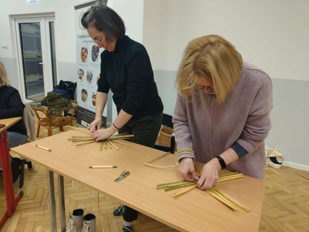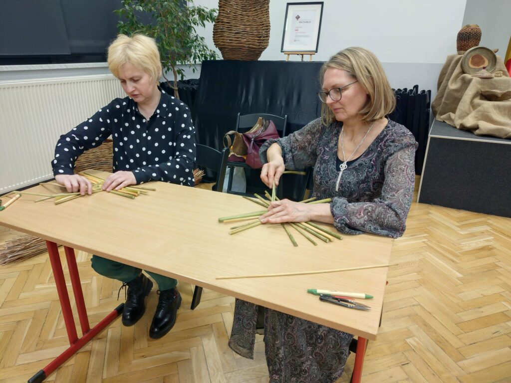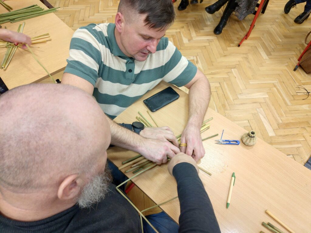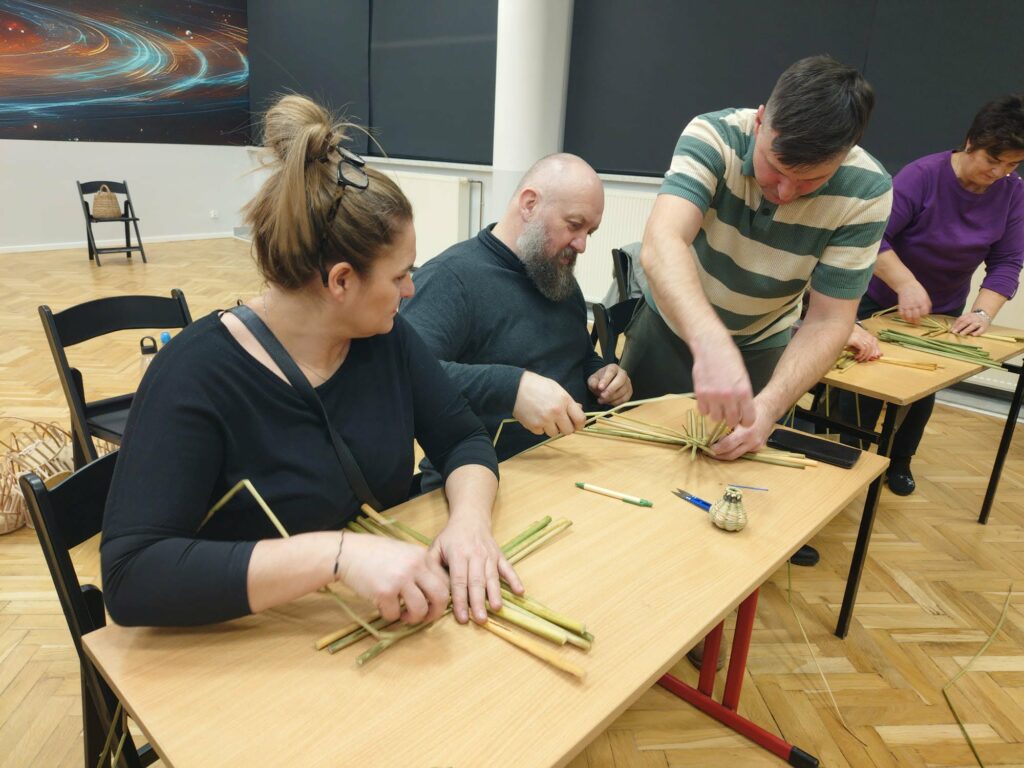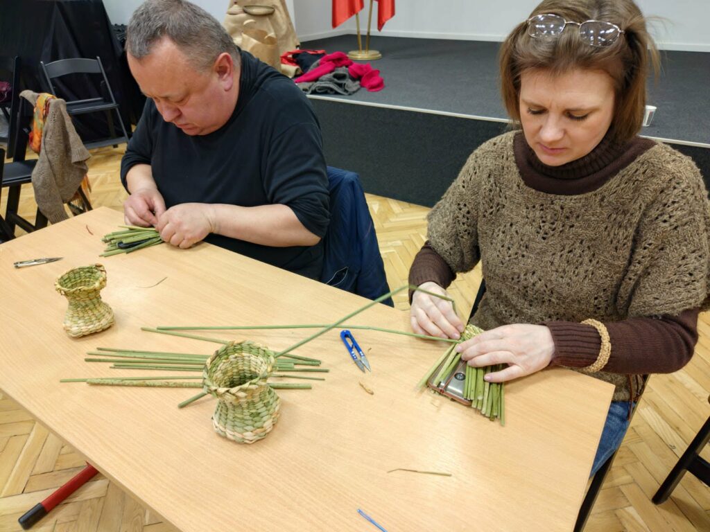 Podczas pierwszego dnia Ogólnopolskiego Spotkania Plecionkarzy odbyły się niezwykłe warsztaty wyplatania „Sakwa z oczeretu jeziornego”, które poprowadził Adam Pliszko i „Torebka z wikliny” z Rafałem Górczyńskim.