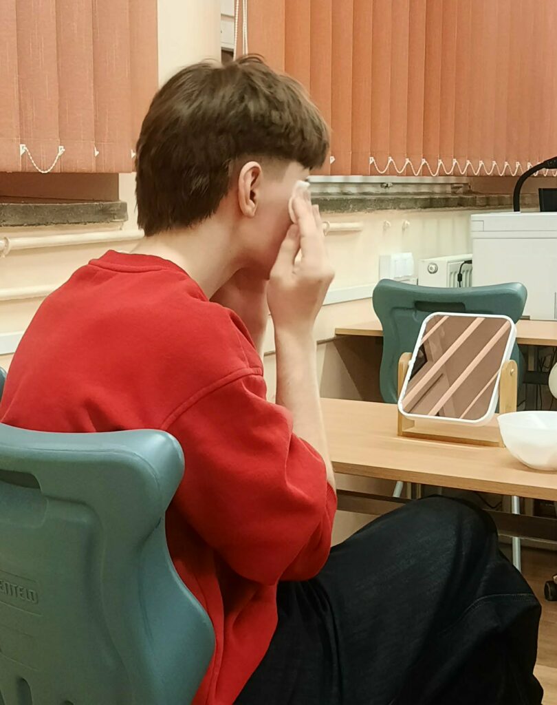Po części teoretycznej miała miejsce część praktyczna. Pod okiem prowadzącej uczestnicy spotkania mieli okazję zapoznać się z podstawowymi zabiegami pielęgnacyjnymi twarzy oraz samodzielnie wykonać wybrane etapy pielęgnacji, takie jak oczyszczanie, tonizowanie czy nakładanie maseczek.