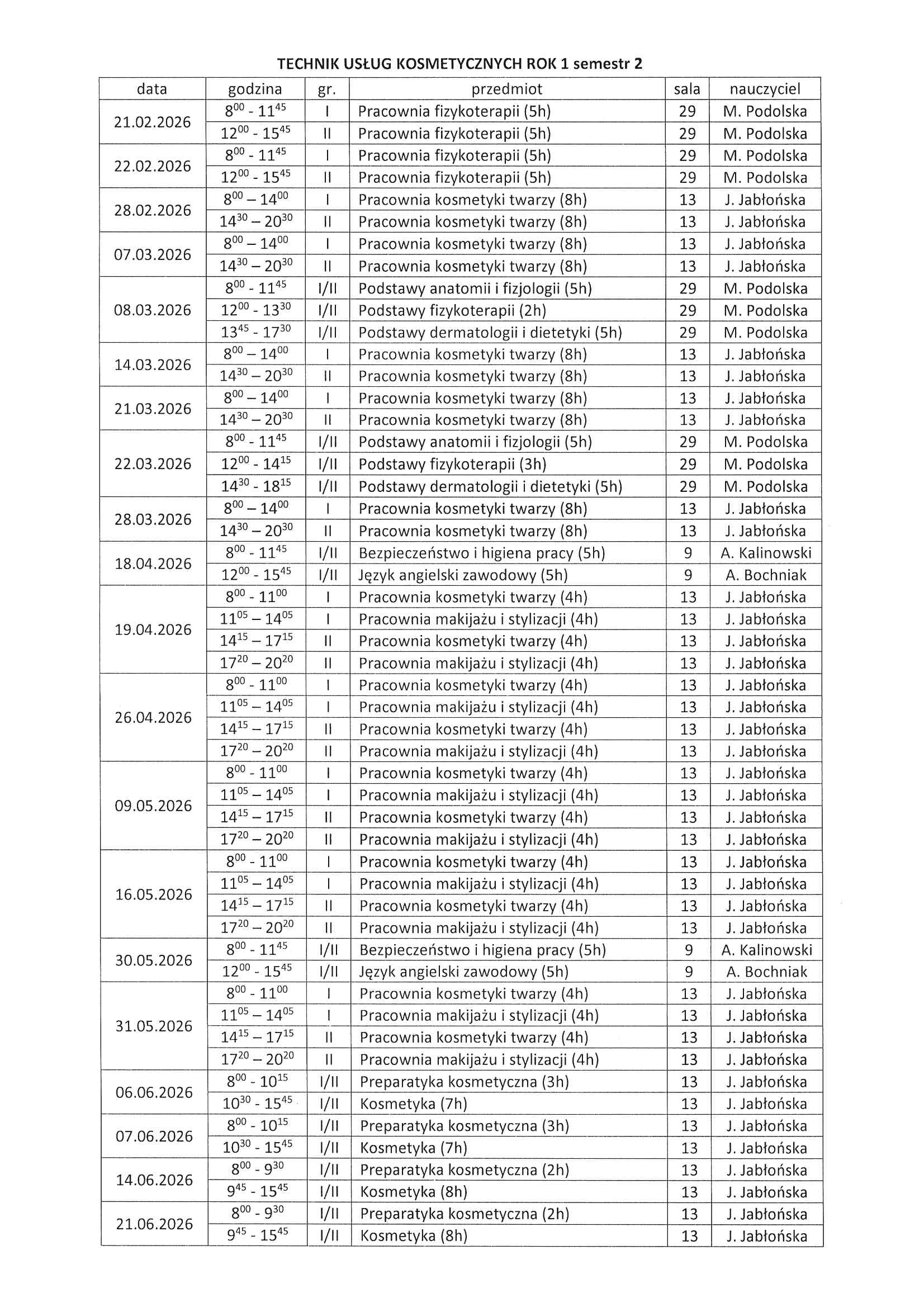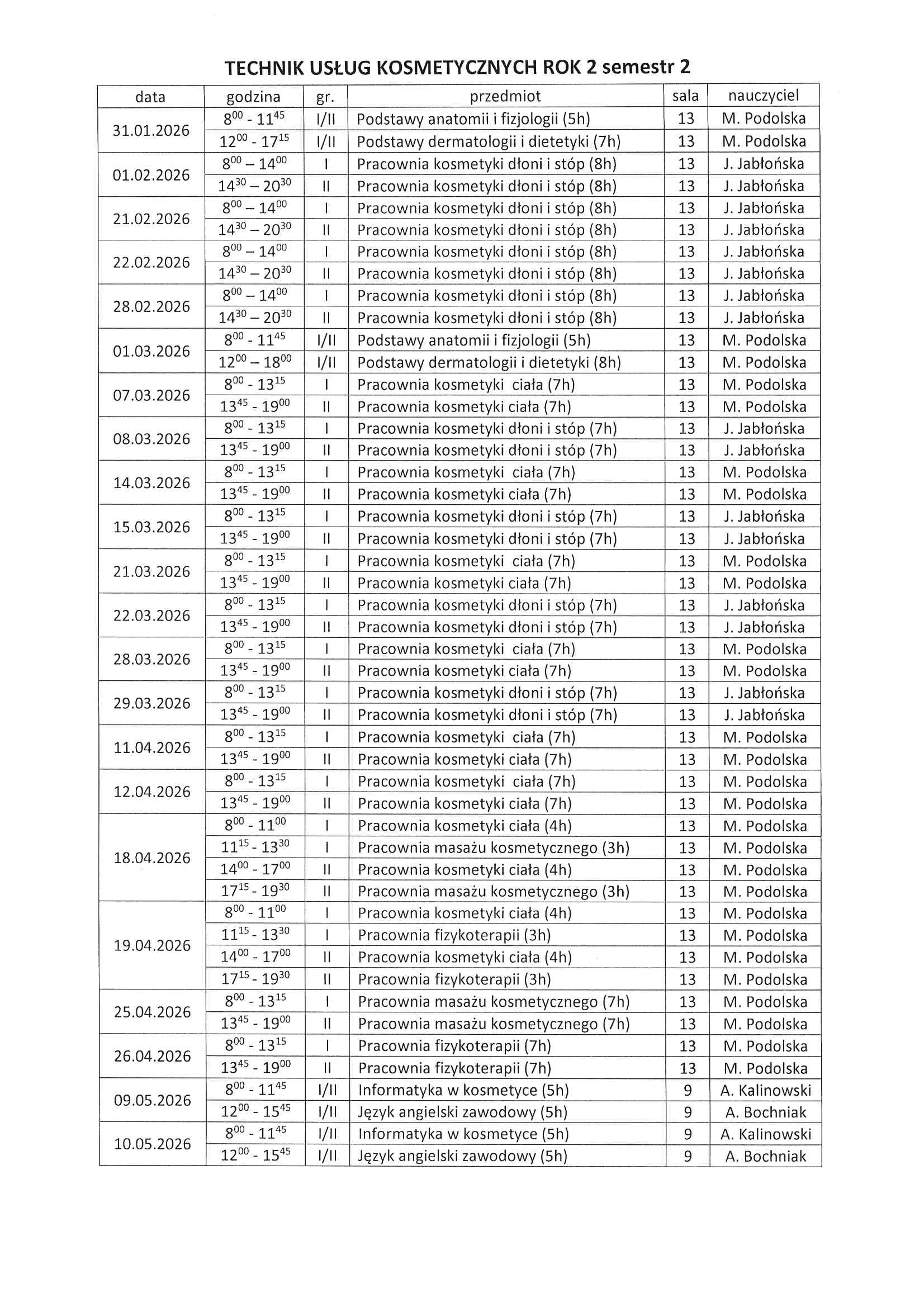 Technik usług kosmetycznych II sem.